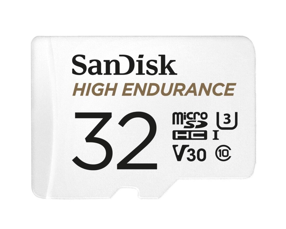 - SANDISK High Endurance, microSDXC, 32GB, U3, 100 Mb/s, SD адаптер (ID: 529362)