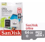 - SANDISK Ultra microSDHC UHS-I, 64GB, Class 10, 80Mb/s, Адаптер (ID: 529381)