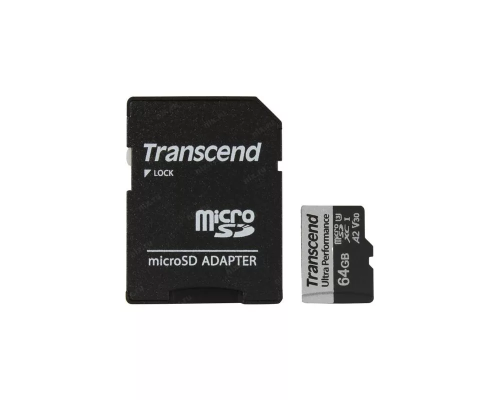 - Transcend 64GB micro SD with adapter UHS-I U3 A2 Ultra Performance (ID: 327831)