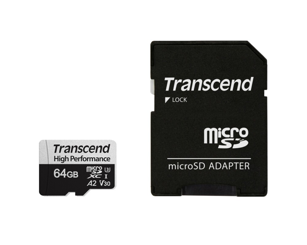 - Transcend 64GB microSD with adapter UHS-I U3 A2 (ID: 112078)