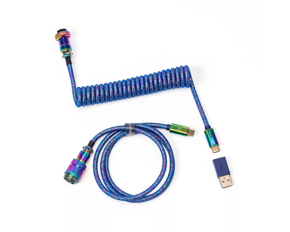 Геймърски аксесоари Кабел за клавиатура Keychron Colorful Premium Coiled Cable, USB-C - USB-C, Rainbow Blue ACC-Cab-6