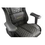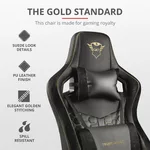 TRUST GXT 712 Resto Pro е изключително качествен геймърски стол с удобен дизайн с подплата с висока плътност и възглавници за врата и долната част на гърба, които ви осигуряват оптимален комфорт. Регулируемата височина и 4D облегалката и подлакътниците ви държат в отлична позиция за победа и целодневни игрални сесии. Здравата и здрава метална рамка издържа до 150 кг, докато устойчивата на разливане повърхност ви дава екстра спокойствие в случаи на инцидентни разливания. Самият дизайн на стола е много атрактивен – повърхността му е направена от еко кожа с елегантни златисти шевове и велурени детайли, които му придават първокласен и професионален външен вид. TRUST GXT 712 Resto Pro разполага с регулируема височина, 4D регулируеми подлакътници и накланяща се седалка с функция за заключване под всякакъв ъгъл. Освен това столът разполага с възглавница за кръст и врат, както и със супер здрава метална основна рамка, която издържа на натоварване до 150 кг.