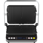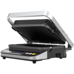 3 в 1: грил, барбекю и фурна Мощна - 2000W 3 режима на готвене: горен грил, долен грил или и двата грила Прецизни ръчни настройки: до 230 °C на стъпки от 5 °C; таймер до 60 минути Разширено пространство за печене: 6 порции едновременно Готвене на 2 плочи едновременно: 180° ъгъл на отваряне Двустранни плочи: изберете предпочитаните - оребрени или плоски LED дисплей Интуитивно управление чрез докосване Автоматично изключване на захранването: защита от прегряване Гответе здравословна храна без масло: незалепващи плочи 5 минути за идеална средно изпечена пържола Противоплъзгащи се крачета поддържат грила стабилно на място |