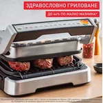 | Други характеристики | 9 programs of cooking; LED indicator; Automatic cooking sensor; Anti-slip system; Removable plates; Dishwasher safe- Plates and juice tray; Cold to touch handles |