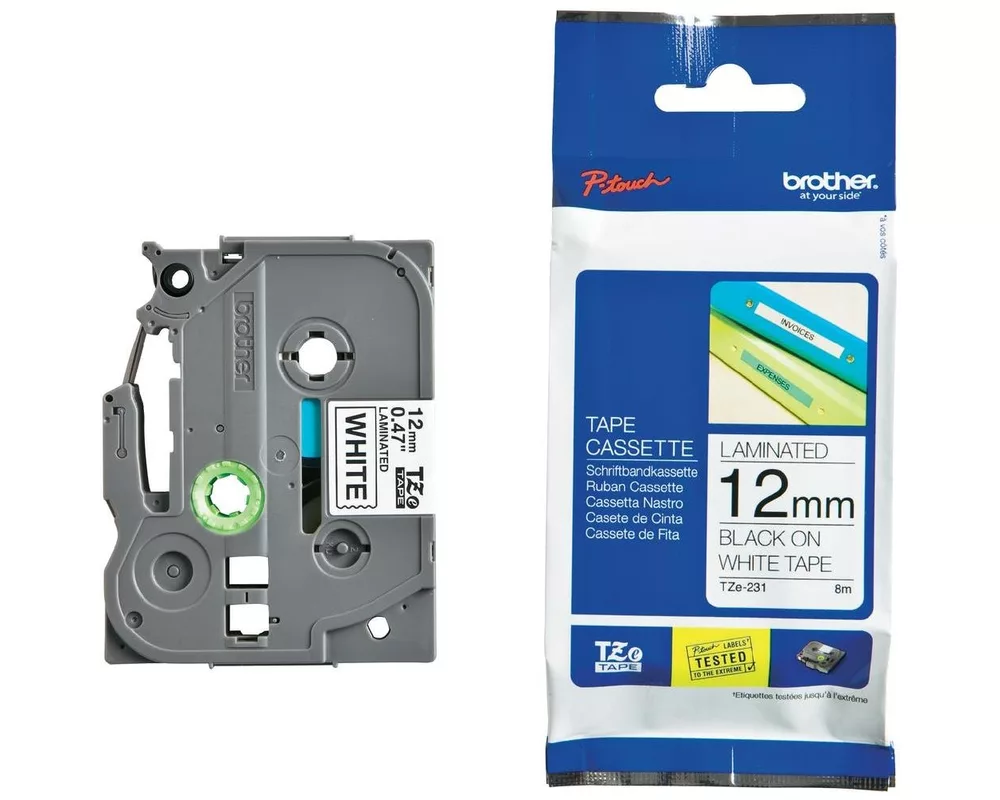 - Brother TZe-231 Tape Black on White Laminated 12mm - Eco (ID: 58258)