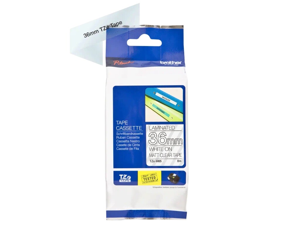- Brother TZe-M65 Matt Laminated Labelling Tape Cassette – White On Clear (ID: 792259)