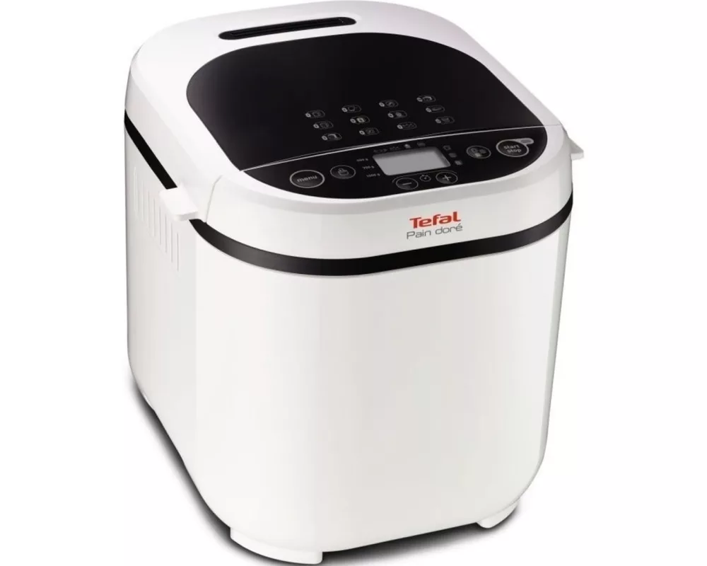 Насладете се на вкусен домашно приготвен хляб всеки ден! Супер лесен за употреба: просто поставете продуктите както е описано в рецептата и изберете желаната програма. Хлебопекарна Tefal Pain Dore ще промени възприятията Ви за вкусна закуска. Автоматичните програми на хлебопекарната позволяват да приготвите прясно изпечен френски, ръжен, пълнозърнест, сладък или безглутенов хляб, апетитни хлебчета бриош, блатове за торти, включително и конфитюри и каша! 12 лесни за използване програми за подготовката на: обикновен хляб, френски хляб, сладък хляб, ръжен хляб, пълнозърнест хляб, безглутенов хляб и бърз хляб, блатове за торта, конфитюр, каша, втасало тесто или само изпичане. Лесна за почистване хлебопекарна, в която ще се влюбите! Tefal Pain Dore е лек и лесен за пренасяне уред, а с компактен си размер може да се съхранява и на кухненския плот! В комплект с хлебопекарната получавате и книжка с разнообразни рецепти за различни видове хляб.