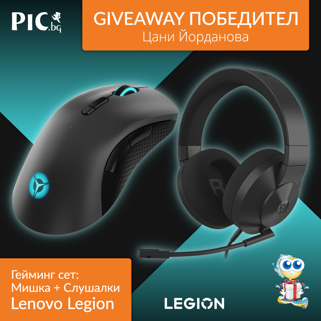 Този път ще зарадваме 1 късметлия от вас със страхотен гейминг сет, който включва мишка Lenovo Legion M600 и слушалки Lenovo Legion H200. С тях ще можете да се насладите на любимите си игри и сме сигурни, че ще ви донесат много победи на гейминг арената.