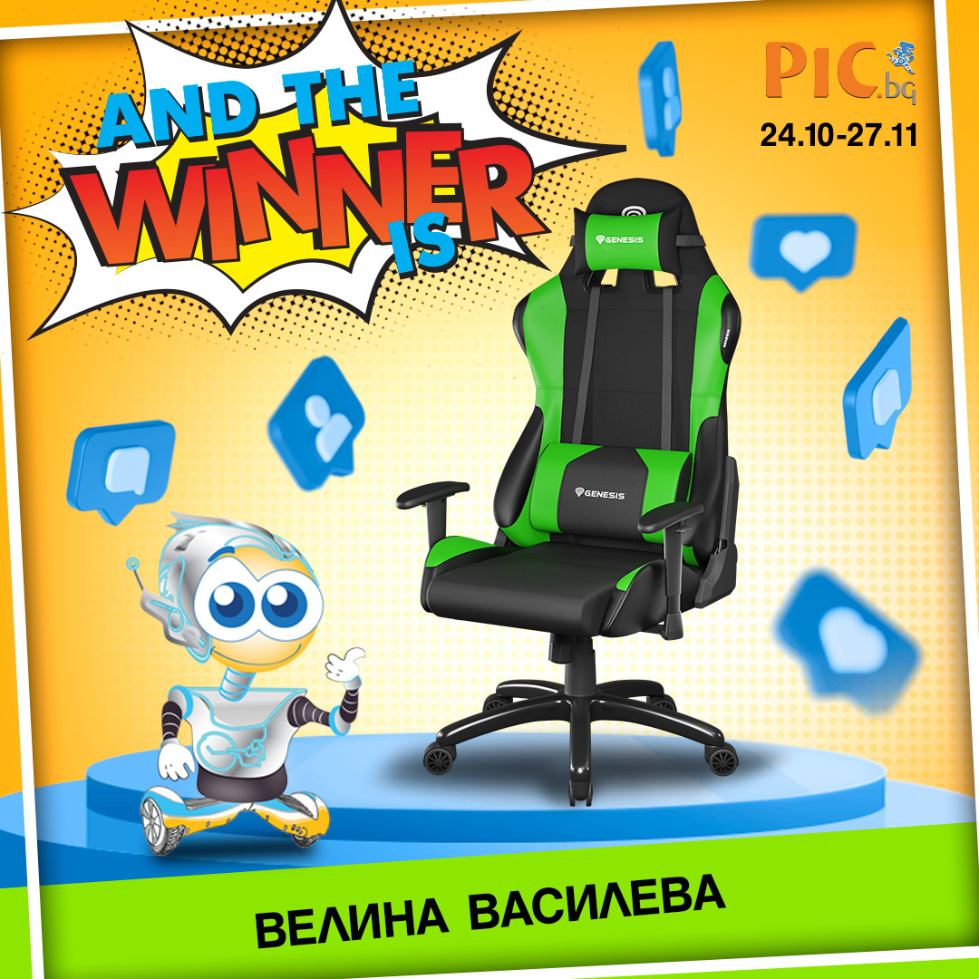 Победителят спечелил наградата геймърски стол Genesis Nitro 550 ще бъде изтеглен на случаен принцип на 30.11.2022г. Тегленето ще бъде излъчено в официалния ни канал в Youtube и обявено в официалните ни страници в Instagram и Facebook. Спечелилият късметлия ще бъде уведомен по телефона, а имената му публикувани в сайта и социалните ни мрежи.