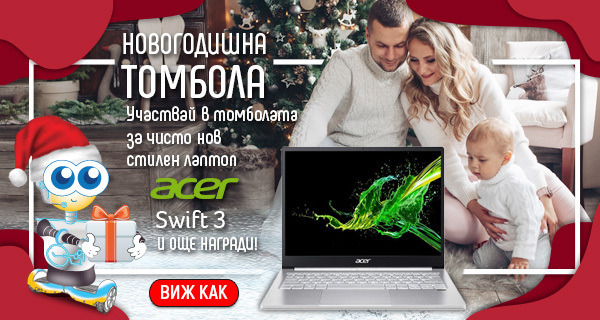 А както са казали хората, Нова година - нов късмет, затова ние от ПИК Компютър, решихме да зарадваме 1 късметлия от Вас със страхотен подарък за Новата година, а именно ЛАПТОП ACER SWIFT 3. Освен това, още 20 щастливци от Вас ще станат притежатели на смарт контакт D-Link Wi-Fi Smart Plug.