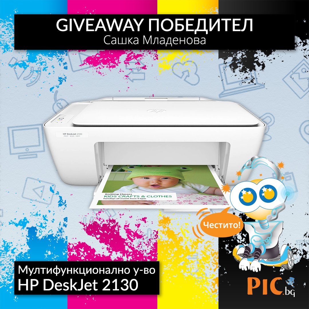 Този път, ние от ПИК Компютър, решихме да зарадваме 1 късметлия от Вас със страхотен подарък, а именно мултифункционално устройство HP DeskJet 2130. С него ще можете да се насладите на цветен и качествен печат, копиране и сканиране на всичко, от което се нуждаете.