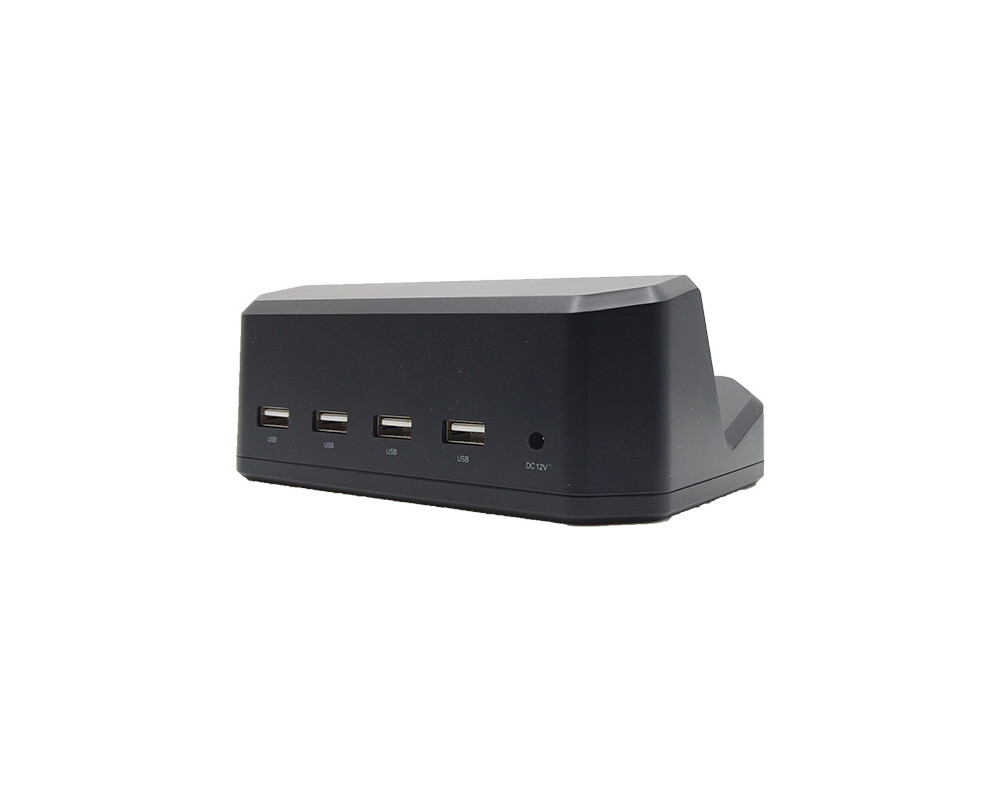| Функции | Easy 9-pin holder, to charge industrial tablet • DC-In interface with Input voltage 12V/2.4A (power supply included) • 4 USB 2.0 ports connected to the tablet directly when mounted • Reliable plastic case, easy to handle and mount |