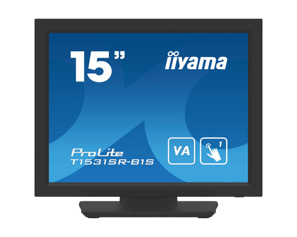Монитор IIYAMA T1531SR-B1S, 15'', Touch monitor, Resistive technology, VA Panel, 4:3, XGA 1024x768, 350cd/m2, 2500:1, 18ms, IP54 Front, VGA, HDMI, DisplayPort, Speakers, Tilt, VESA 100, Black