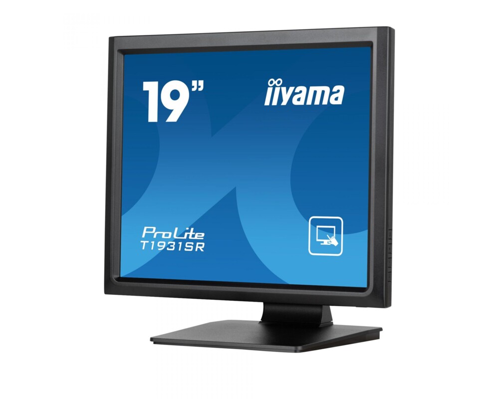 Монитор IIYAMA T1931SR-B1S, 19', IPS Panel, 5:4, 1280 x 1024, 250cd/m2, 1000:1, 14ms, Serial resistive touch, VGA, HDMI, DP, Speakers, IP54 (front), OSD key lock, Tilt, VESA 100, Black