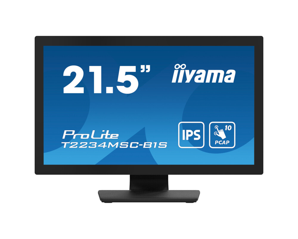 Монитор IIYAMA T2234MSC-B1S, 21.5'', Touch monitor, 10 points Projective capacitive, IPS Panel, 16:9, FHD 1920x1080, 350cd/m2, 1000:1, 8ms, 7H, IP65 Front, Anti-fingerprint coating, OSD key lock, VGA, HDMI, DisplayPort, Speakers, Tilt, Portrait, Face up, VESA 100, Black