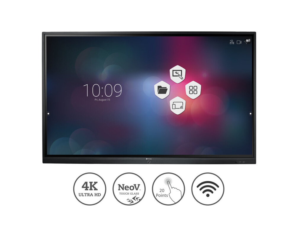 Тъч Дисплей AG Neovo IFP-7502 74.5 inch LED, IPS Panel, 3840x2160 UHD, 20-point IR Touch, 350cd/m2, USBx6, VGA, HDMIx3, HDMI-out, OPS, RS232, RJ45, Android 8.0, Dual core A73+Dual core A53 CPU, 3GB RAM, 16GB Storage, Speakers 2x16W, Meetboard Apps, wallmount and WiFi incl, interactive white board solution