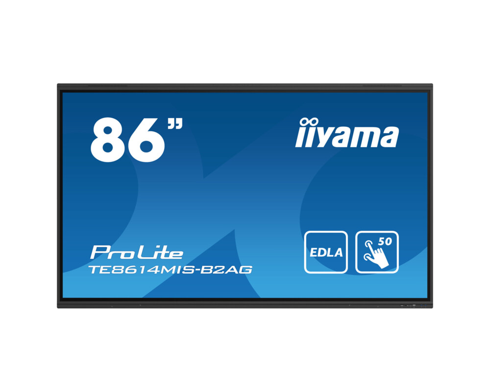 Дисплей IIYAMA TE8614MIS-B2AG, 85.6'', VA Panel, Anti-Glare, 16:9, 3840x2160, 435cd/m2, 4000:1, 6.5ms, PureTouch-IR+, DP, 4x HDMI, 2x USB-C, RS232, LAN, IR, HDMI Out, SPDIF, 4x USB, Android 13 OS, Google EDLA Certified, iiWare 12E, WiFi, BT, 24/7, 8GB, 64GB, OPS Slot, VESA, Black