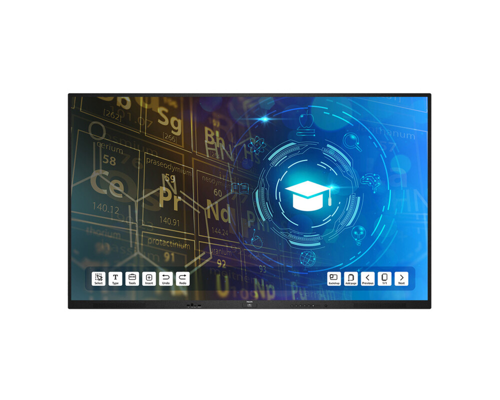 Дисплей Philips 65BDL4152E/00, 64.5 inch, 3840x2160 UHD, ADS Panel, IR 40-point touch, 500 cd/m2,1200:1, 8ms, 3x HDMI 2.0, 2x USB-C, 3xUSB, HDMI-Out,2x RJ45, RS232C, WiFi, BT 5.2, 18/7, Speakers, Android 13, Octa Core CPU (4xA73 + 4xA53), 8GB RAM, 32GB Storage