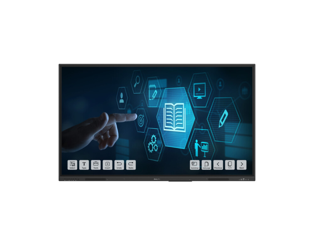 Дисплей Philips 75BDL3152E/00, 74.5'', Touch, VA panel, 16:9, Anti-Glare, 4K UHD 3840x2160, 400cd/m2, 5500:1, 6.5ms, Android 13, 0-gap Infrared touch, QC Cortex A55, 4GB, 32GB, VGA, 3x HDMI, 5x USB, USB-C, SPDIF, LAN, RS232, OPS slot, Speakers, USB Playback, 16/7, VESA, Black