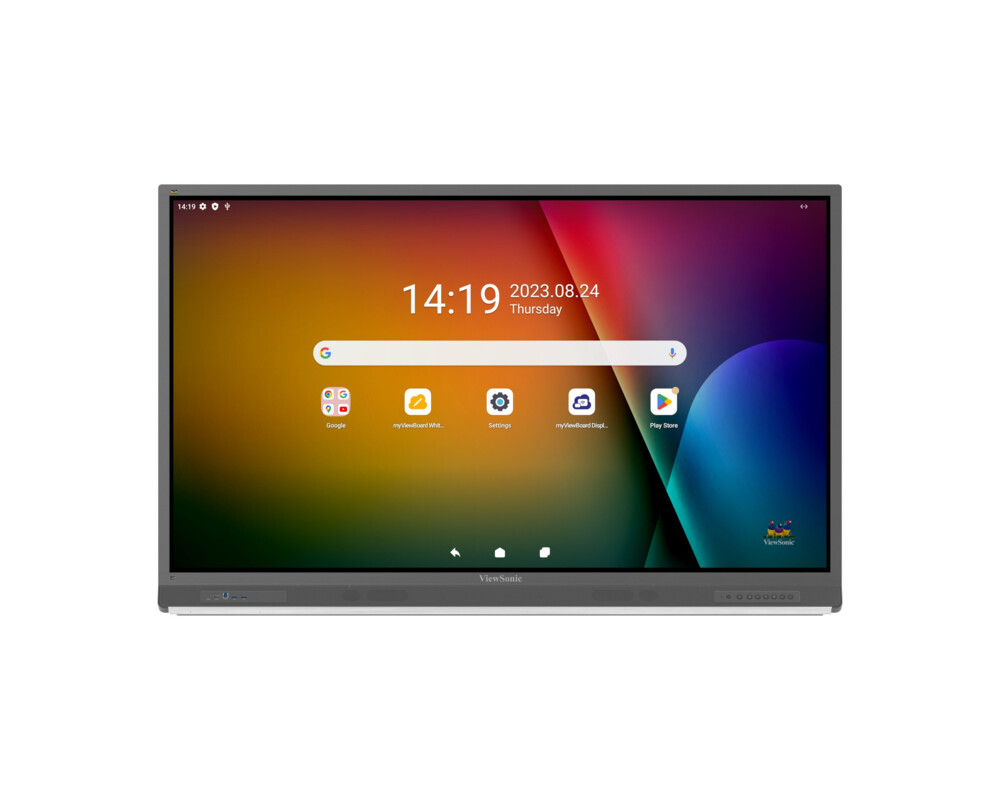 Дисплей ViewSonic IFP6552-2F, 65'', IPS LED panel, AG, Ultra Fine Touch, 16:9, 4K UHD 3840x2160, 7ms, 400cd/m2, 5000:1, Octa-Core CPU, 8GB, 64GB, VGA, 3x HDMI, DP, RS232, 2x LAN, HDMI Out, SPDIF, 3x USB-C, 5x USB-A, MIC, Speakers, Android 13, OPS Slot, myViewBoard, VESA, Black, Certified under the Android Enterprise Device License Agreement (EDLA)