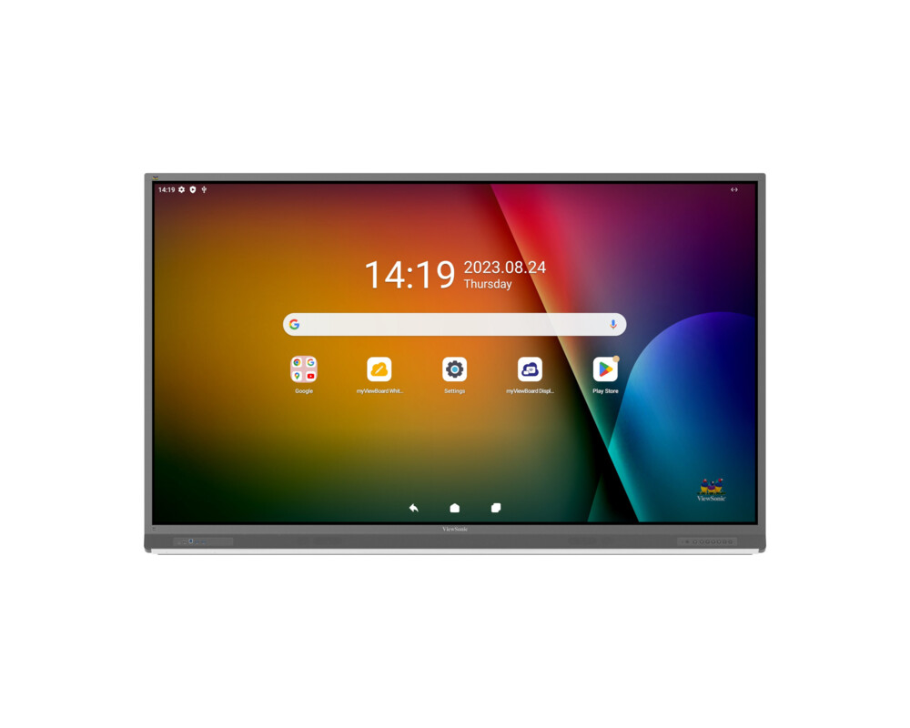 Дисплей ViewSonic IFP8652-2F, 86'' VA LED panel, AG, Ultra Fine Touch, 16:9, 4K UHD 3840x2160, 7ms, 400cd/m2, 4000:1, Octa- Core CPU, 8GB, 64GB, VGA, 3x HDMI, DP, RS232, 2x LAN, HDMI Out, SPDIF, 3x USB-C, 5x USB-A, MIC, Speakers, Android 13, OPS Slot, myViewBoard, VESA, Black, Certified under the Android Enterprise Device License Agreement (EDLA)