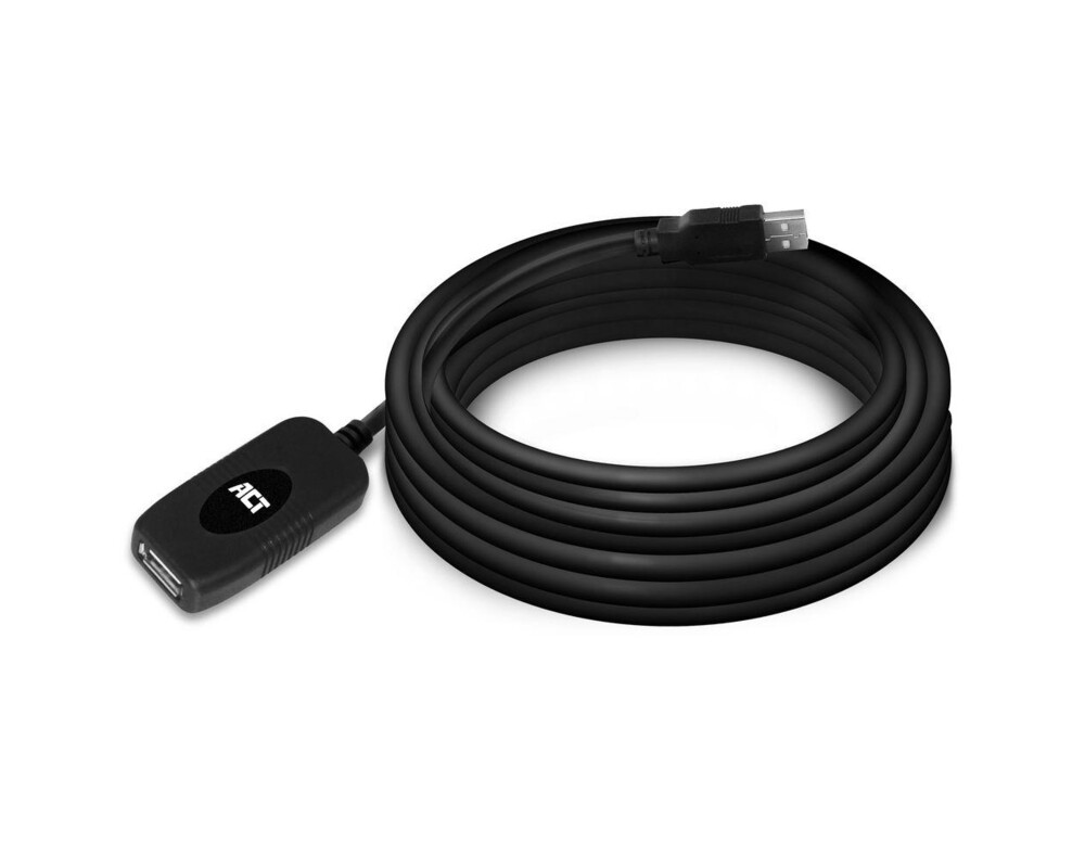 Кабел ACT SB0005, USB-A мъжко - micro USB-B женско, 5.0 м, Черен EWENT-ACT-CAB-SB0005