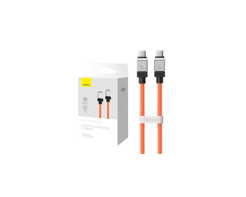 - Кабел за бързо зареждане Baseus CoolPlay, USB-C към USB-C 100W, 2 м CAKW000307 - оранжев (ID: 676668)