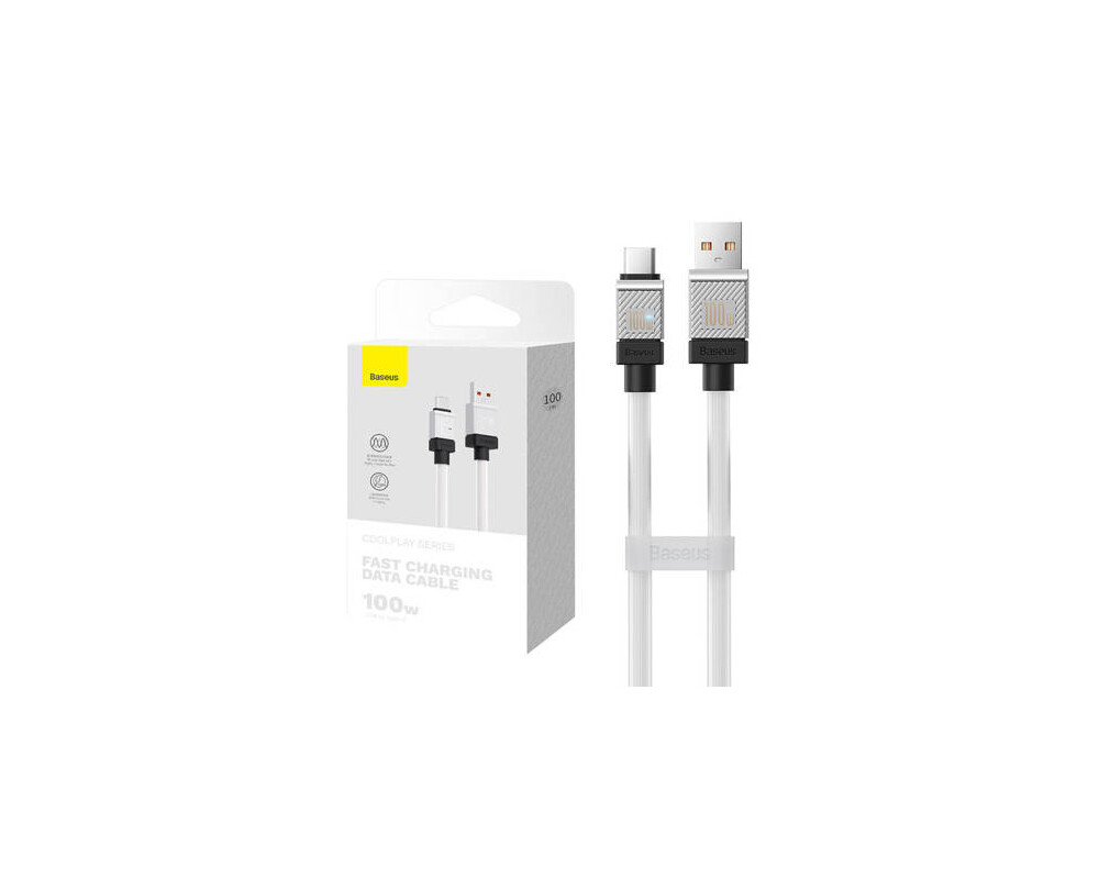 - Кабел Baseus CoolPlay USB към USB-C 100W 1м CAKW000602 - бял (ID: 676943)