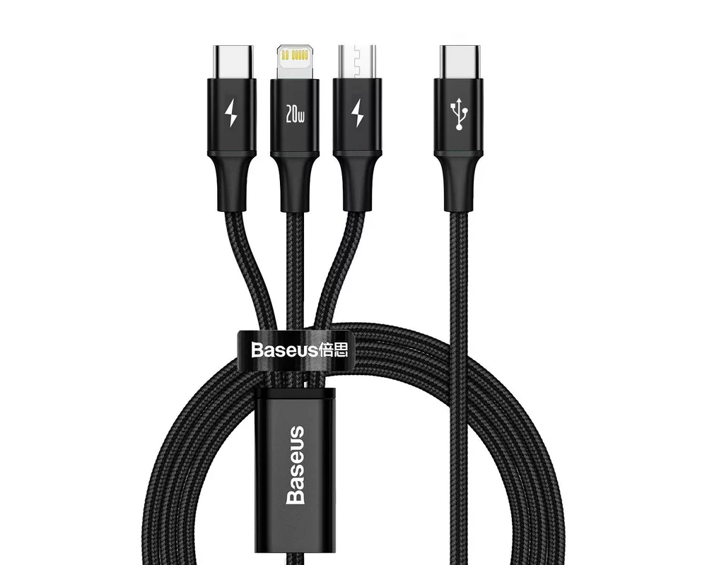 - Кабел Baseus Superior 3 в 1 USB-C към Lightning, microUSB и USB-C, 1.5м CAMLT-SC01 - черен (ID: 677468)