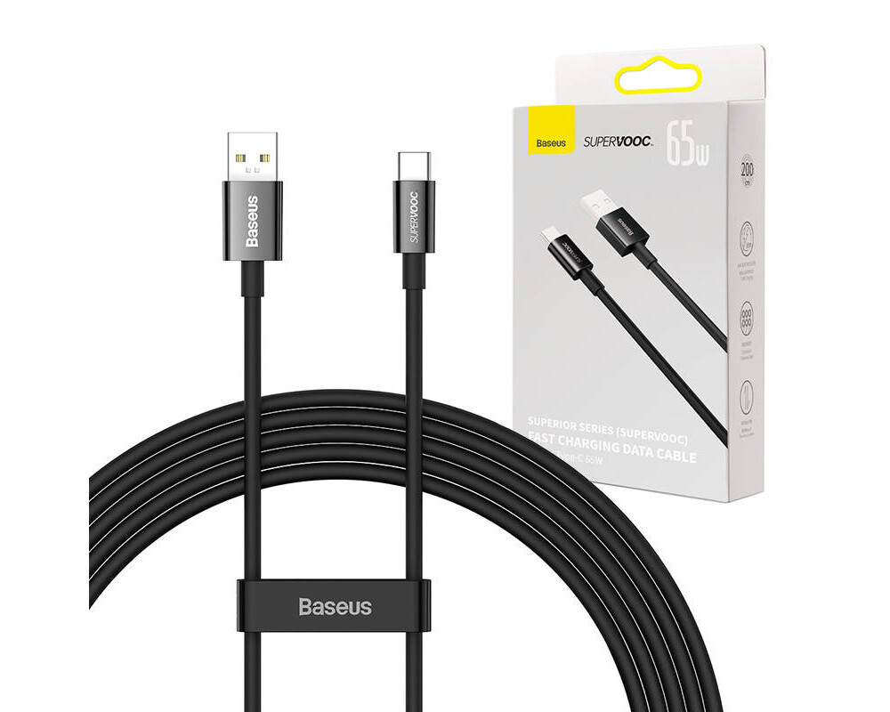 Кабел Baseus Superior Series USB към USB-C 65W 2м CAYS001001 - черен CAYS001001