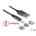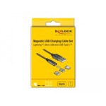 Кабел за зареждане Delock 3 в 1, USB-A мъжко - 8 Pin / Micro USB / USB Type-C, 1м, Черен DELOCK-85705