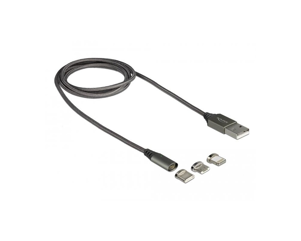 - за зареждане Delock 3 в 1, USB-A мъжко - 8 Pin / Micro USB / USB Type-C, 1м, Черен (ID: 267429)