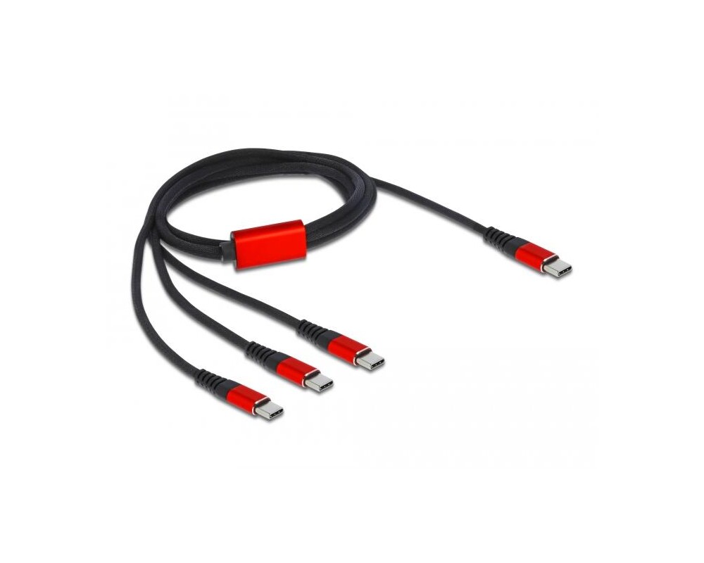 - за зареждане Delock 3 в 1, USB-C - 3 x USB-C, 1м, Черен/Червен (ID: 661956)