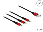 Кабел за зареждане Delock 3 в 1, USB - Lightning/ Micro USB/ USB-C, 1м, Черен/Червен DELOCK-85892