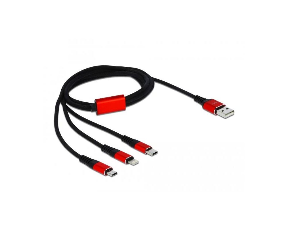 - за зареждане Delock 3 в 1, USB - Lightning/ Micro USB/ USB-C, 1м, Черен/Червен (ID: 267430)