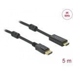Кабел Delock DisplayPort мъжко - HDMI мъжко, 5 м., 4K 60Hz, Черен DELOCK-85958