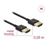 Кабел Delock HDMI-A мъжко - HDMI-A мъжко, Ethernet, 3D, 4K, 0.25 м, Черен DELOCK-85117