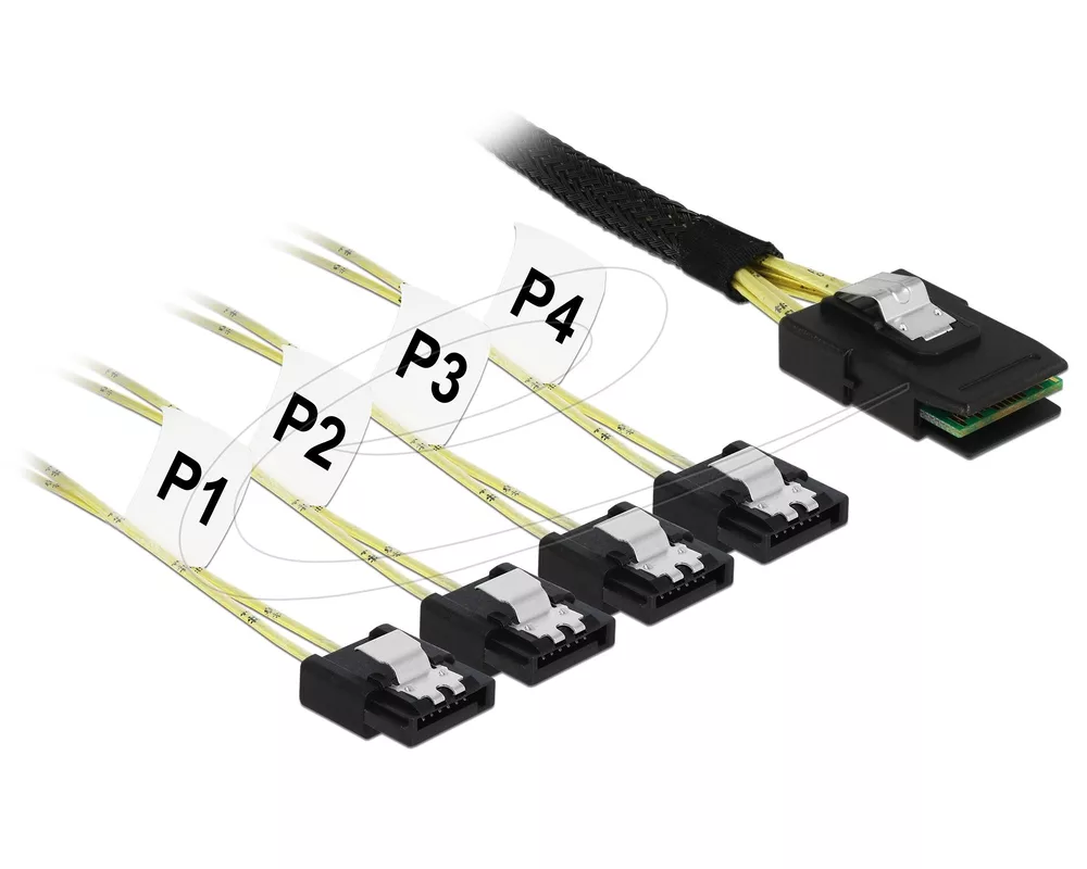 - Интерфейсен кабел Delock Mini SAS SFF-8087 към 4 x SATA 7-pin 1 m metal (ID: 882421)
