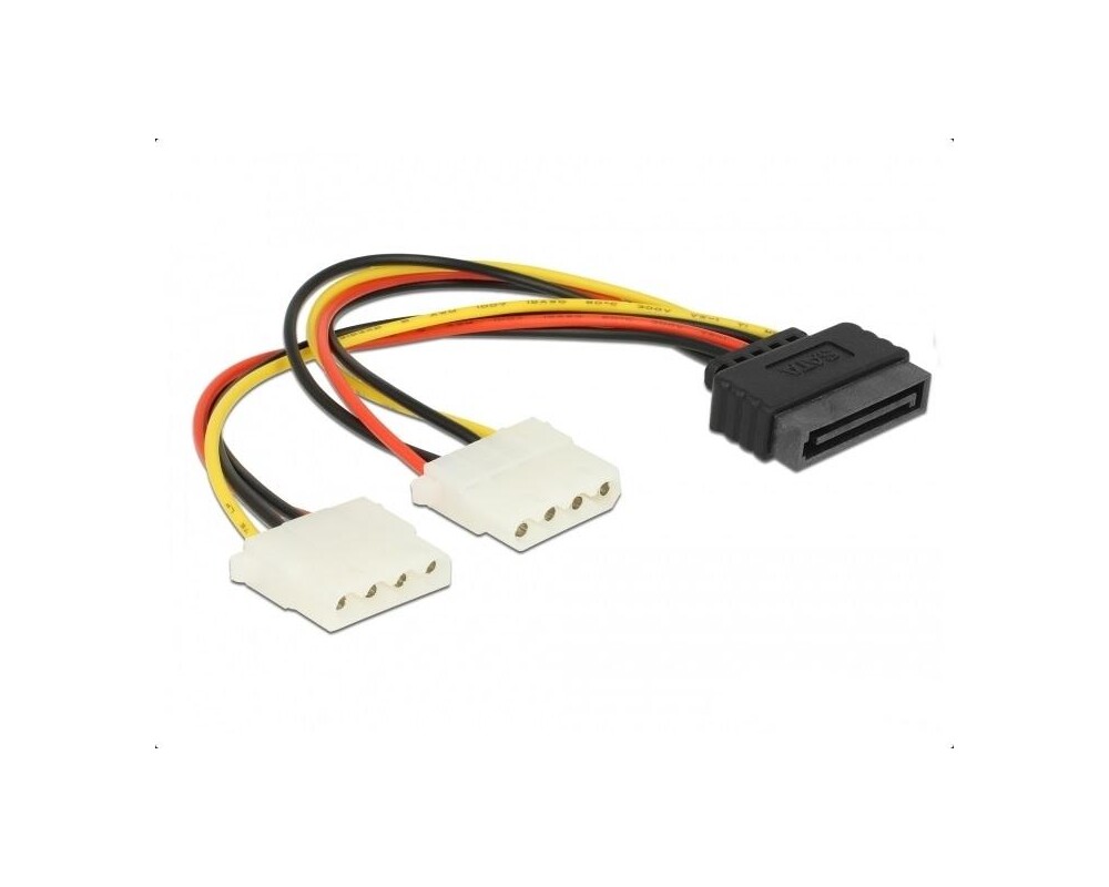 Кабел DeLock Power SATA 15pin към 2x 4pin Molex женско, 20cm