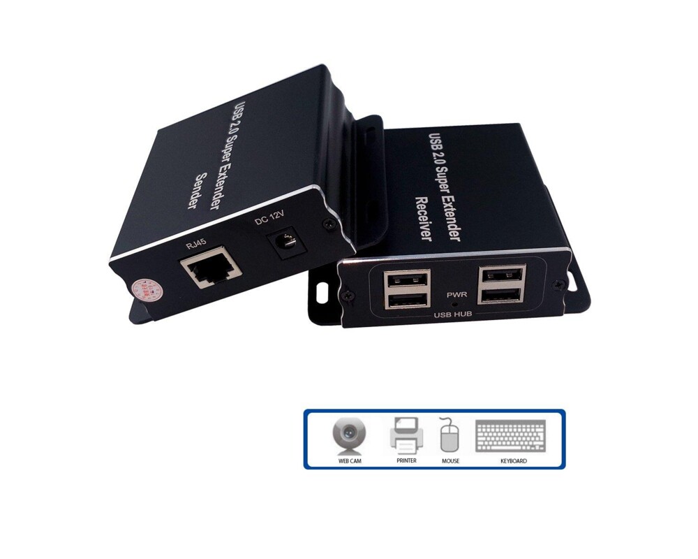 ASKHU04-USB 1x4 USB 2.0 Extender разширява USB сигнал до 100 м, използвайки един кабел CAT5e/6.