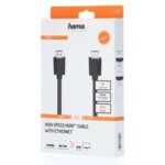 Кабел HAMA 205005, High-Speed, HDMI мъжко - HDMI мъжко, 4K,18Gbit/s, Ethernet, 1.5 м, Екраниран, Черен HAMA-205005