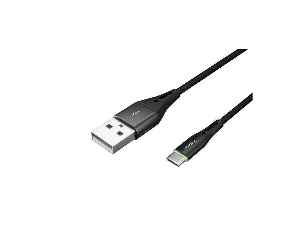 - Natec USB-C(M) -> USB-A (M) 2.0 cable 1m. Black LED nylon (ID: 695661)