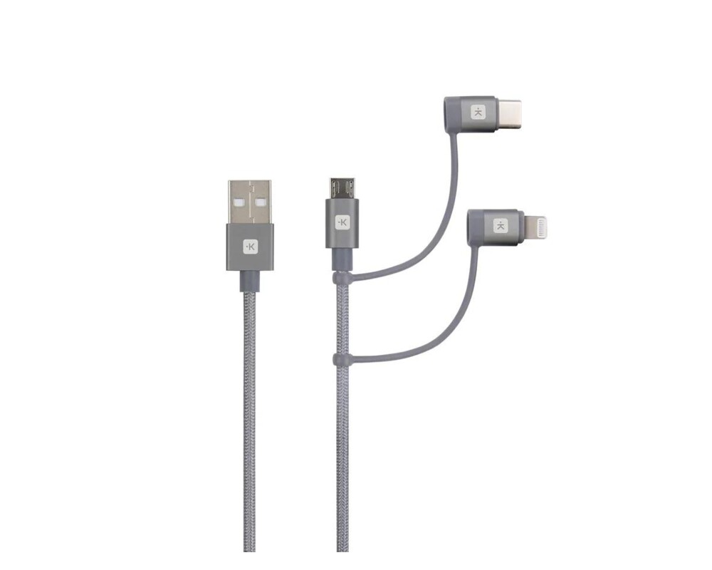 - Skross 3 в 1, USB-A - USB-C/ Lightning/ Micro USB , Метална оплетка, 0.3 м (ID: 693188)
