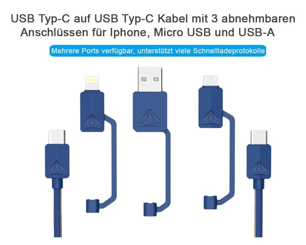 Кабел за зареждане Type-C- Micro USB/ Lightning/ USB-A син цвят PDC-3 XTAR CABLE-PDC-3