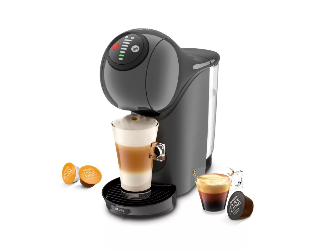 Кафемашината Krups Genios S ще ви позволи да персонализирате любимите си напитки по ваш вкус, топли или студени, от еспресо и дълго кафе до капучино и лате макиато. Каквото и да изберете, резултатът ще бъде професионален, благодарение на системата с помпа за налягане до 15 бара. С над 30 рецепти, от които можете да избирате, Genio S винаги ще бъде на ваше разположение, независимо каква напитка предпочитате. Функцията XL предлага възможност за приготвяне на количество до 300 мл от вашата любима напитка. Еко режимът автоматично ще изключи еспресо машината след 1 минута неактивност. Еспресо машината е съвместима с херметически затворените капсули NESCAFE Dolce Gusto.