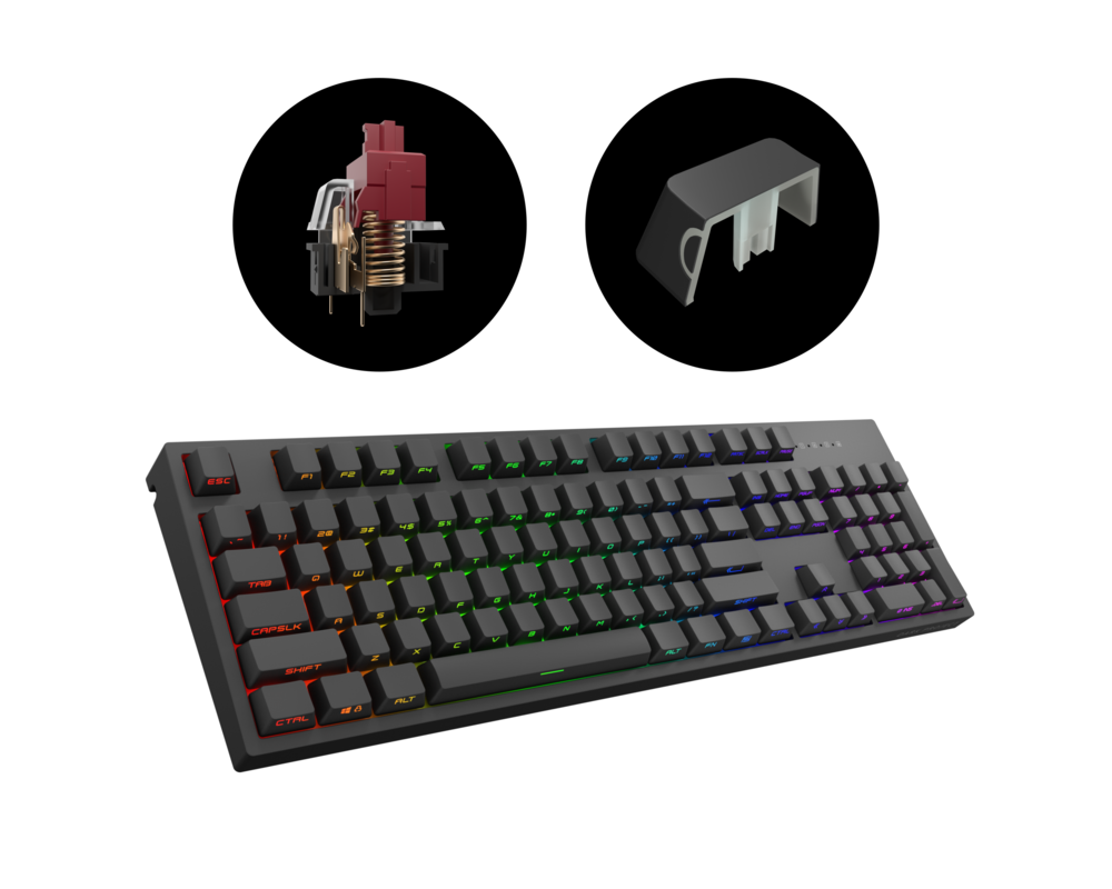 - Геймърскa механична клавиатура Dark Project KD104A Black Full Size - Hot-Swappable Gatheron Optical Red, RGB, PBT (ID: 687718)
