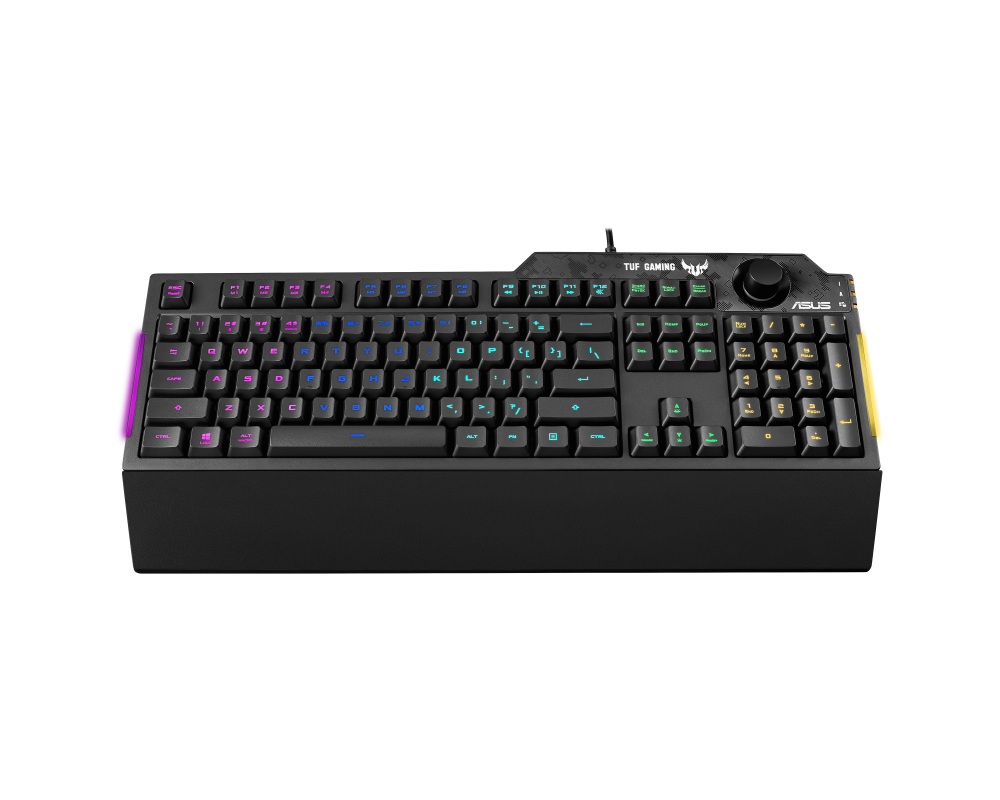 | Други характеристики | Tactile TUF Gaming switches with 19-key rollover for responsive, reliable performance; Dynamic RGB lighting effects and side-mounted light bar to illuminate your game; Dedicated volume knob for fast and easy audio adjustment; Durable, reinforced plastic frame with up to 300 ml spill-resistance for everyday stability and reliability; Programmable keys with on-the-fly macro recording and onboard memory for personalized gameplay; Armoury Crate app provides extensive controls and an intuitive interface to make the keyboard your own; Detachable ergonomic wrist rest for extended comfort |