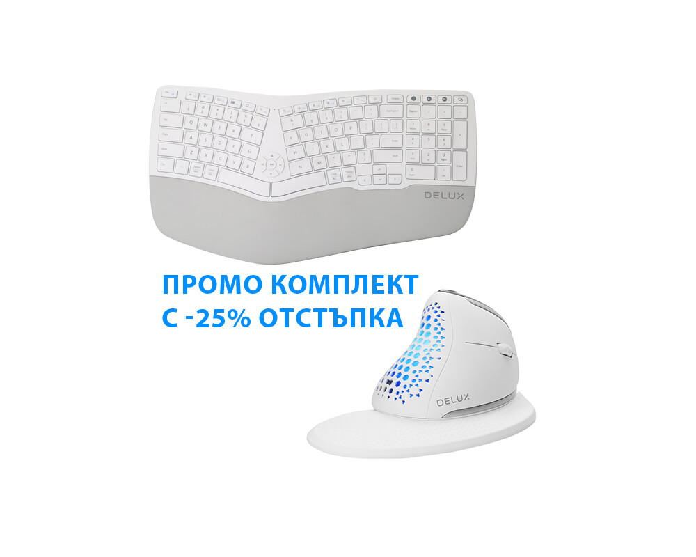 Създайте идеалната безжична работна станция с този комплект, включващ Delux GM902 White 2.4G+BT 5.0 и Delux M618XSD White.