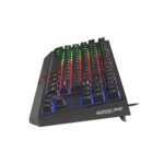 За да бъдете още по-добри във всяка битка имате нужда от надеждна и сигурна клавиатура, които да ви даде предимство над вашите опоненти. Гейминг клавиатурата Hurricane TKL ви дава комбинация от издръжливост и безпогрешни реакции като по този начин имате ефективно оръжие срещу всеки ваш враг. Тази клавиатура е идеалната комбинация от функционалност и качествен дизайн. Тя е от типа TKL – цифровата част от клавиатурата е премахната с цел оптимизиране на размерите й. Hurricane TKL има многоцветна LED подсветка, която ви помага да се потопите в любимите си игри независимо от заобикалящата ви светлина. Може да изберете между 4 нива на яркост на подсветката (0%, 33%, 66% и 100%), като по този начин комфортът ви по време на игра е гарантиран. Вашата прецизност при игра ще се повиши, тъй като почти всички клавиши на тази клавиатура са снабдени с anti-ghosting функция. Дори когато натискате много клавиши едновременно играта ви няма да замръзне и няма да се налага да спирате геймплея си.