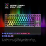 | ДОПЪЛНИТЕЛНИ | Red switches Full anti-ghosting 5 selectable lighting schemes Four fixed backlight modes (without driver) A total of 21 lighting modes! Heavy-duty design WRIST REST Size: 357x72x19mm |